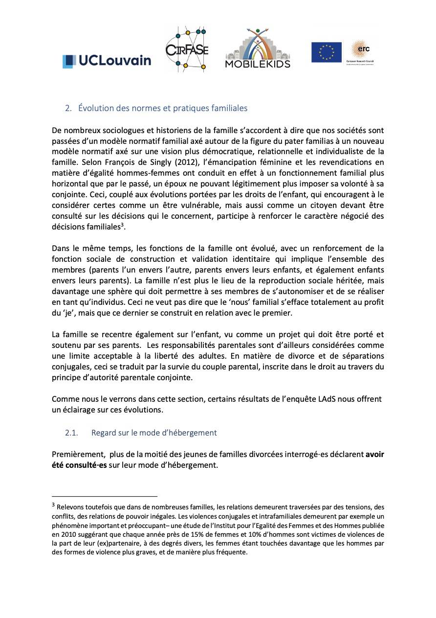 - Évolution des normes et pratiques familiales